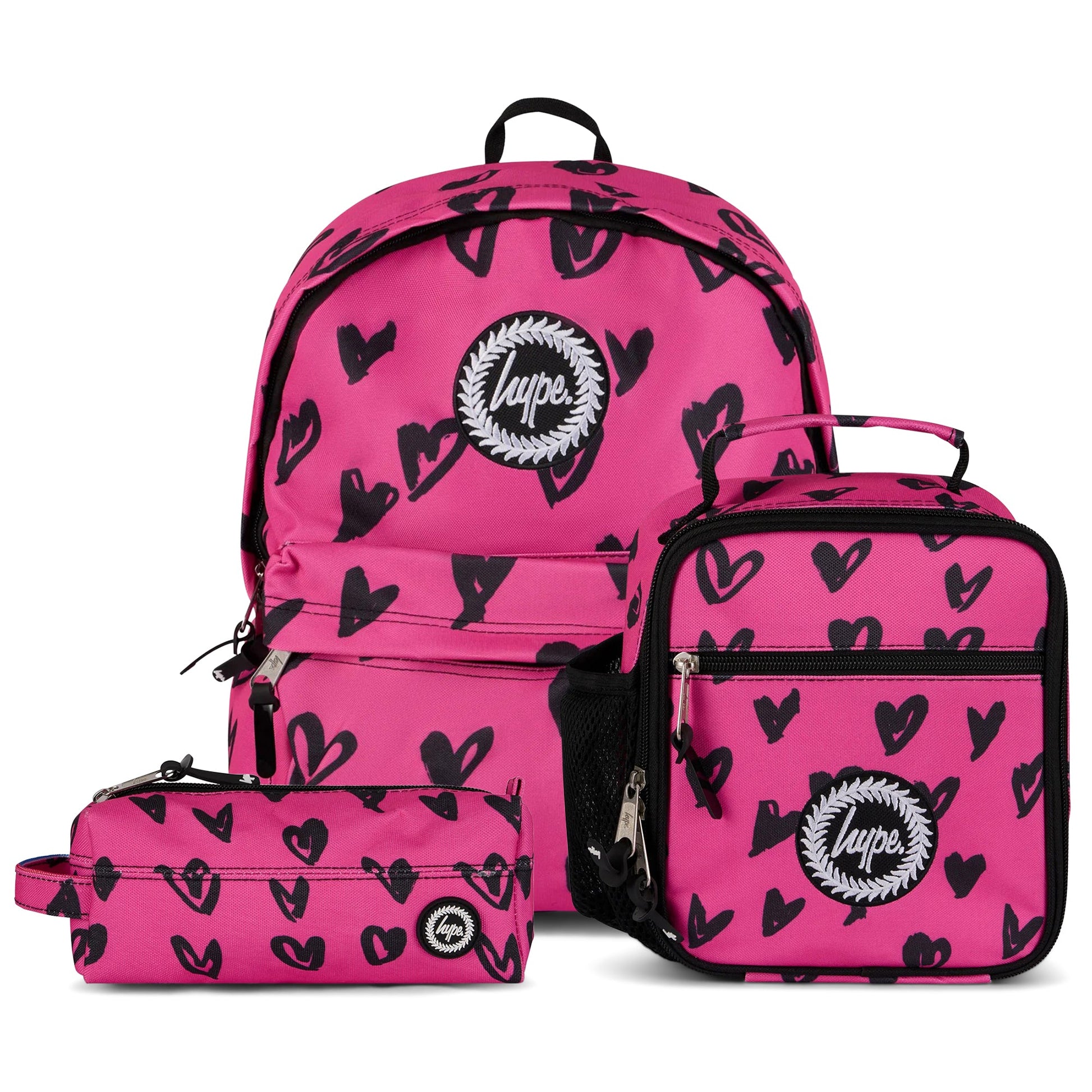 HYPE Backpack SET Pink/Black Scribble Hearts ZSLR-324
